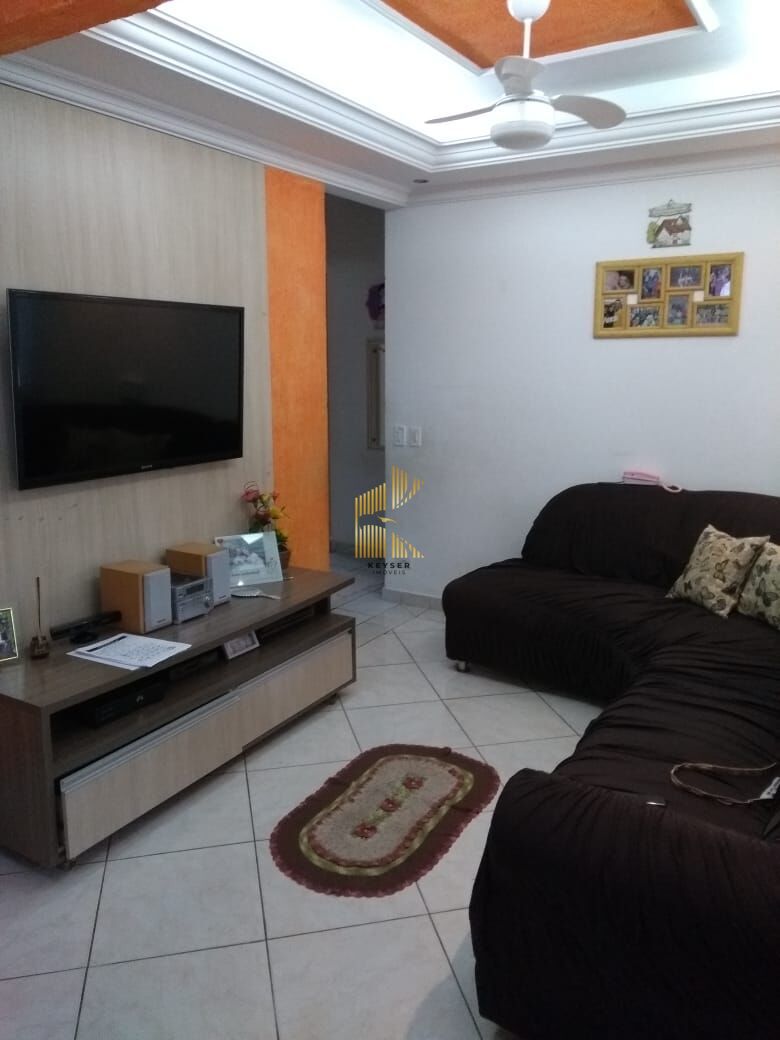 Casa á venda no bairro Samambaia em Praia Grande - SP. Contendo: 4 dormitórios, sala, cozinha, área de serviço, banheiro social, quintal nos fundos, e duas vagas de garagem. Sem mobília.