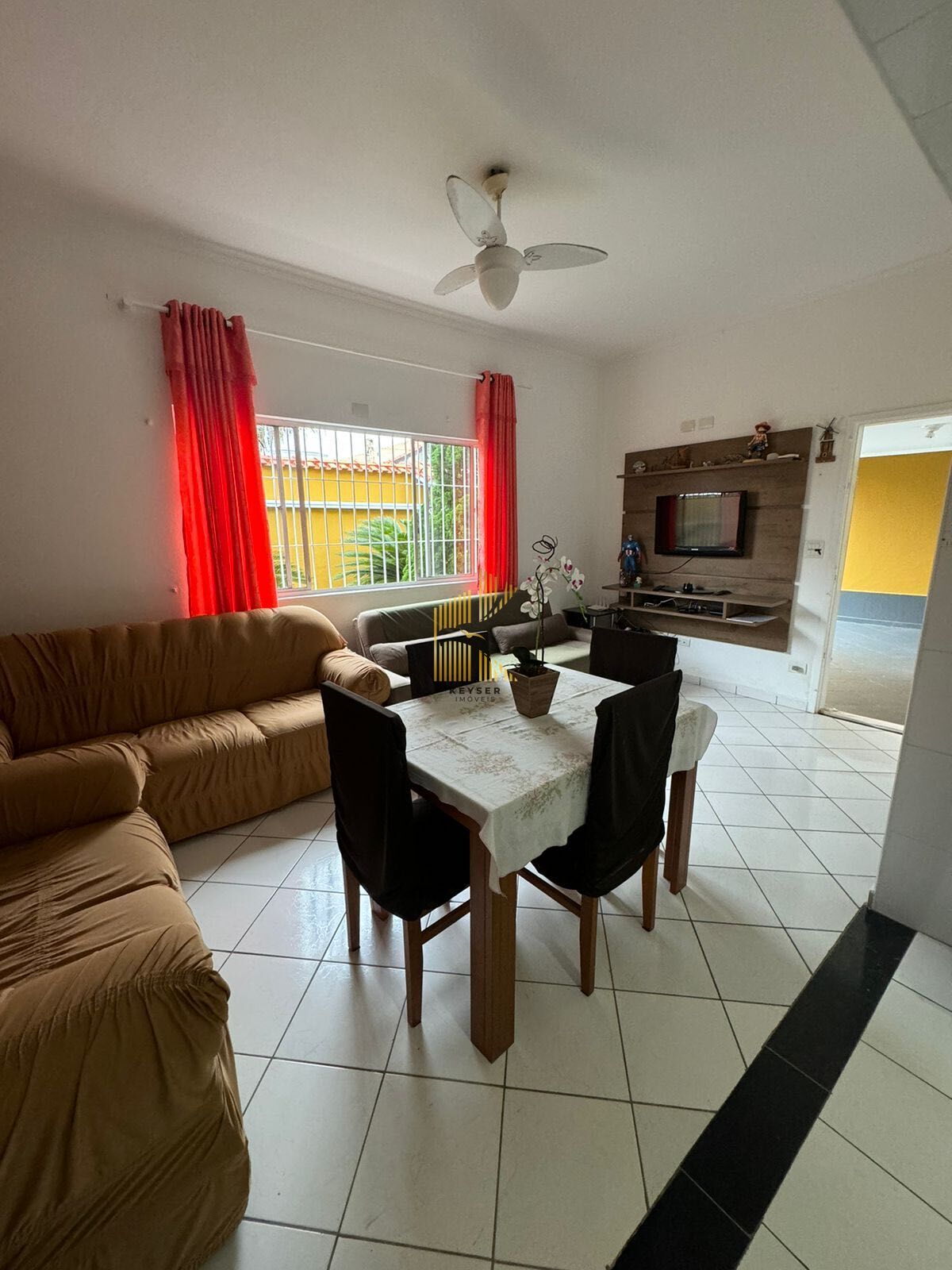Casa à venda no bairro Florida em Praia Grande, SP. 3 dormitórios sendo 1 suíte, sala dois ambientes, cozinha, área de serviço, banheiro social e banheiro externo, área de churrasqueira, jardim na frente e 3 vagas de garagem.