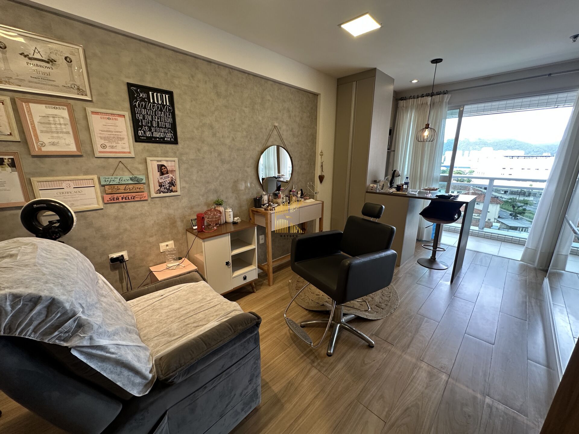 Sala comercial à venda no bairro Gonzaga em Santos, SP. Sala comercial com 3 ambientes, sacada, copa com balcão, lavabo e 1 vaga.