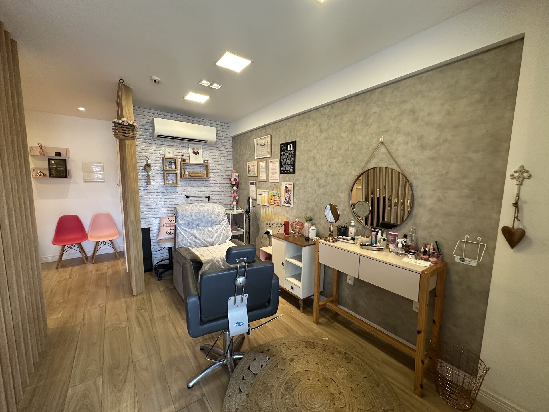 Itens que ficam: Ar-condicionado instalado, móveis planejados, espelhos grandes fixos, nichos grandes da sala (onde está a maca).