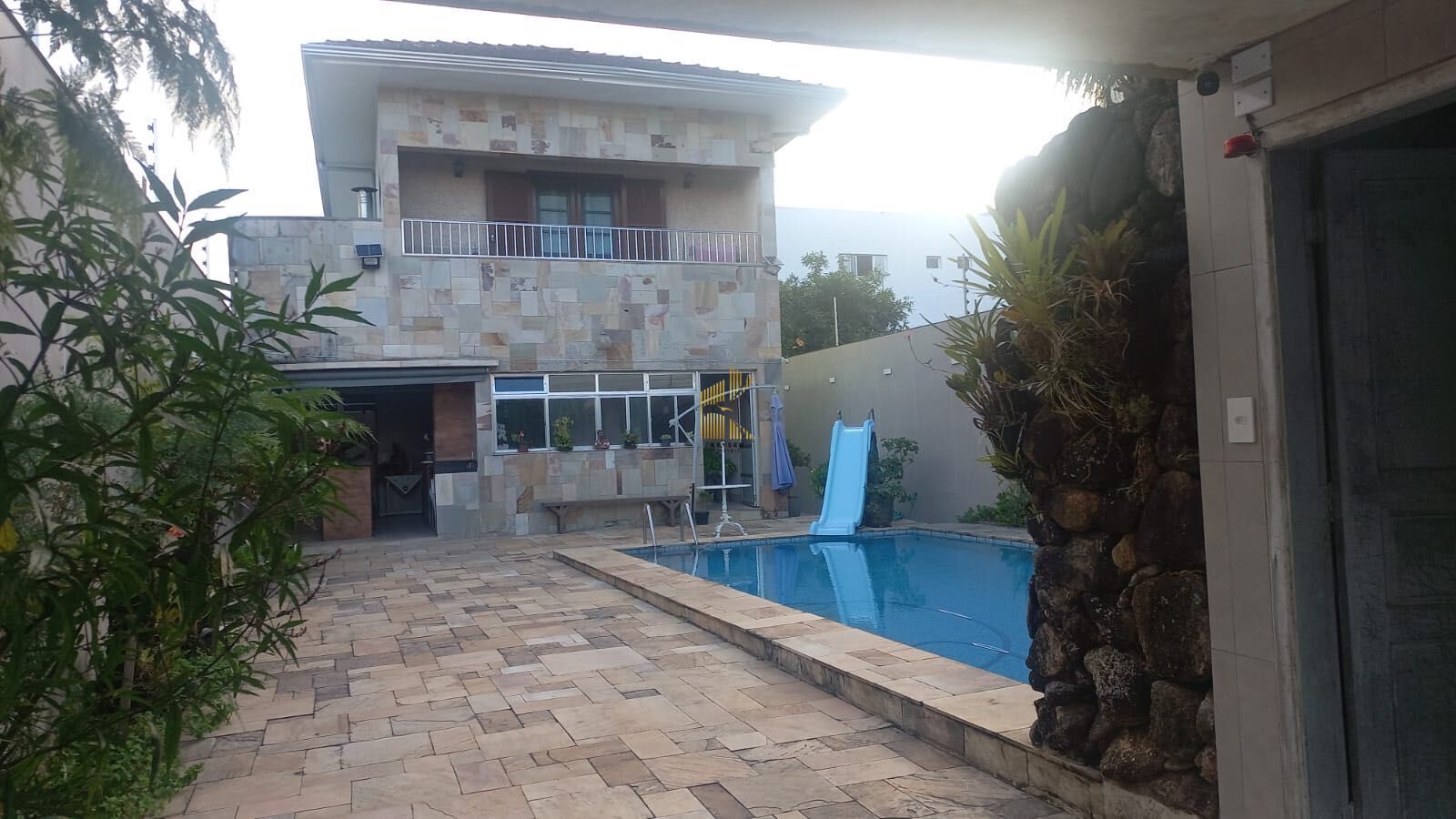 Sobrado isolado a venda no bairro Vila Caiçara em Praia Grande - SP. Contendo: 4 dormitórios sendo 3 suítes, 2 salas de estar, sala de jantar, cozinha integrada e planejada, dispensa, edícula, piscina com cascata, churrasqueira, Home bar, horta